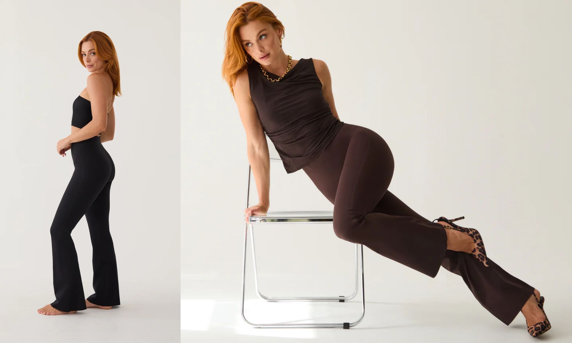 They’re designed to sculpt through the waist and hips, then flare slightly at the ankle to create that long, flattering leg line. The contour fit does exactly what you want it to: smooth, lift, and make every outfit look more polished.